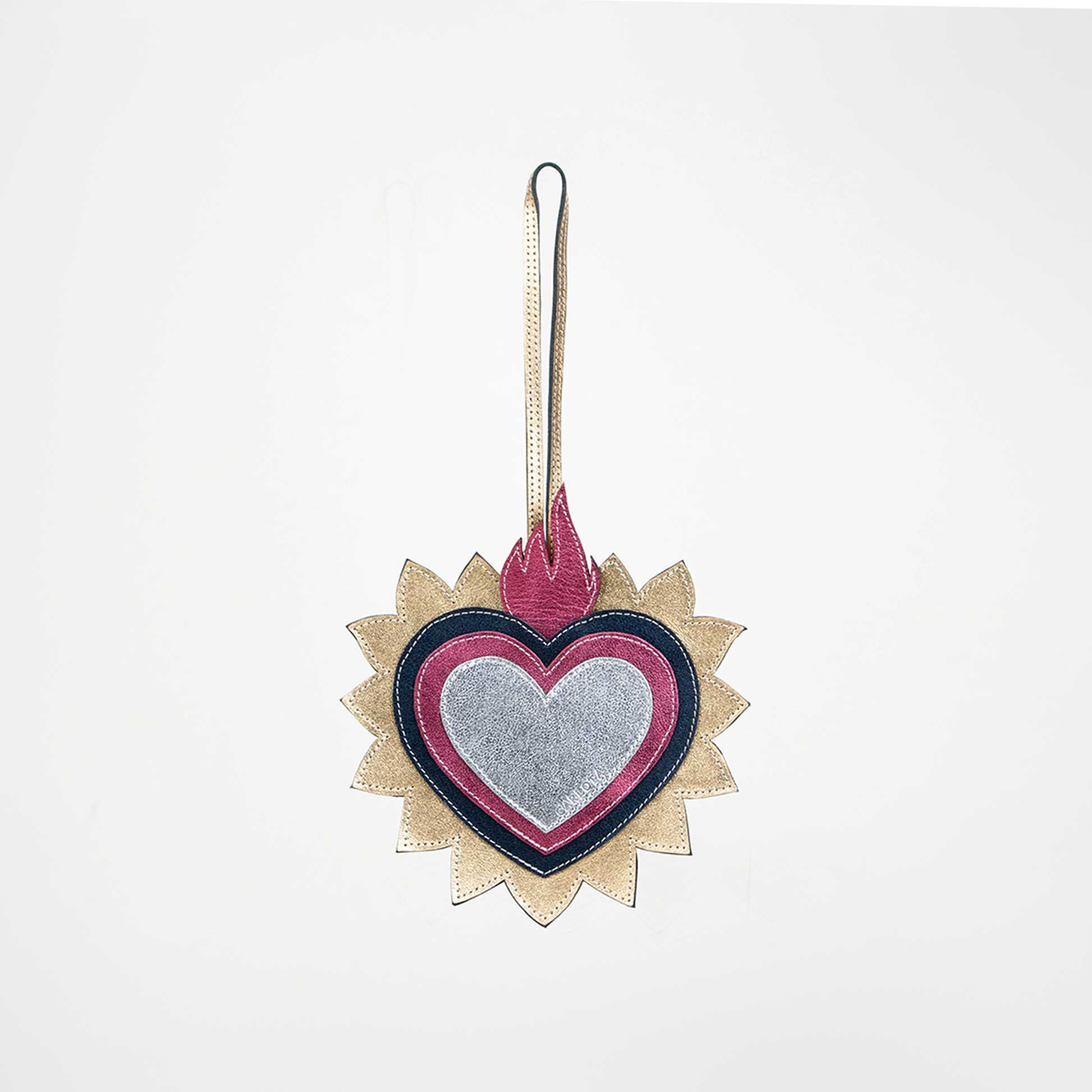 Charm en forma de corazón en tonos metálicos recordando nuestras artesanías mexicanas tan representativas.