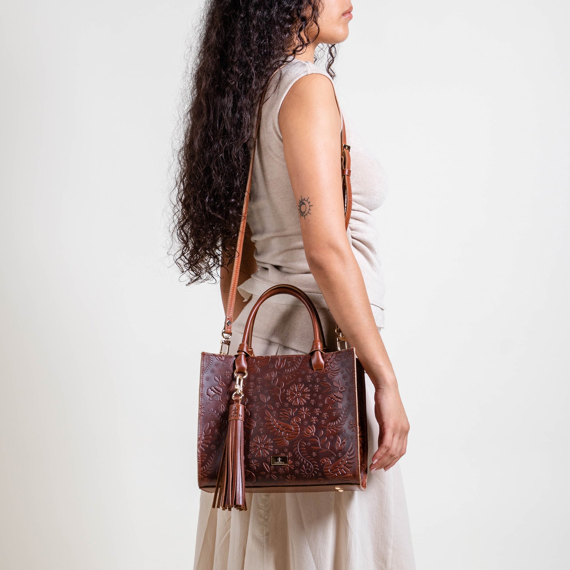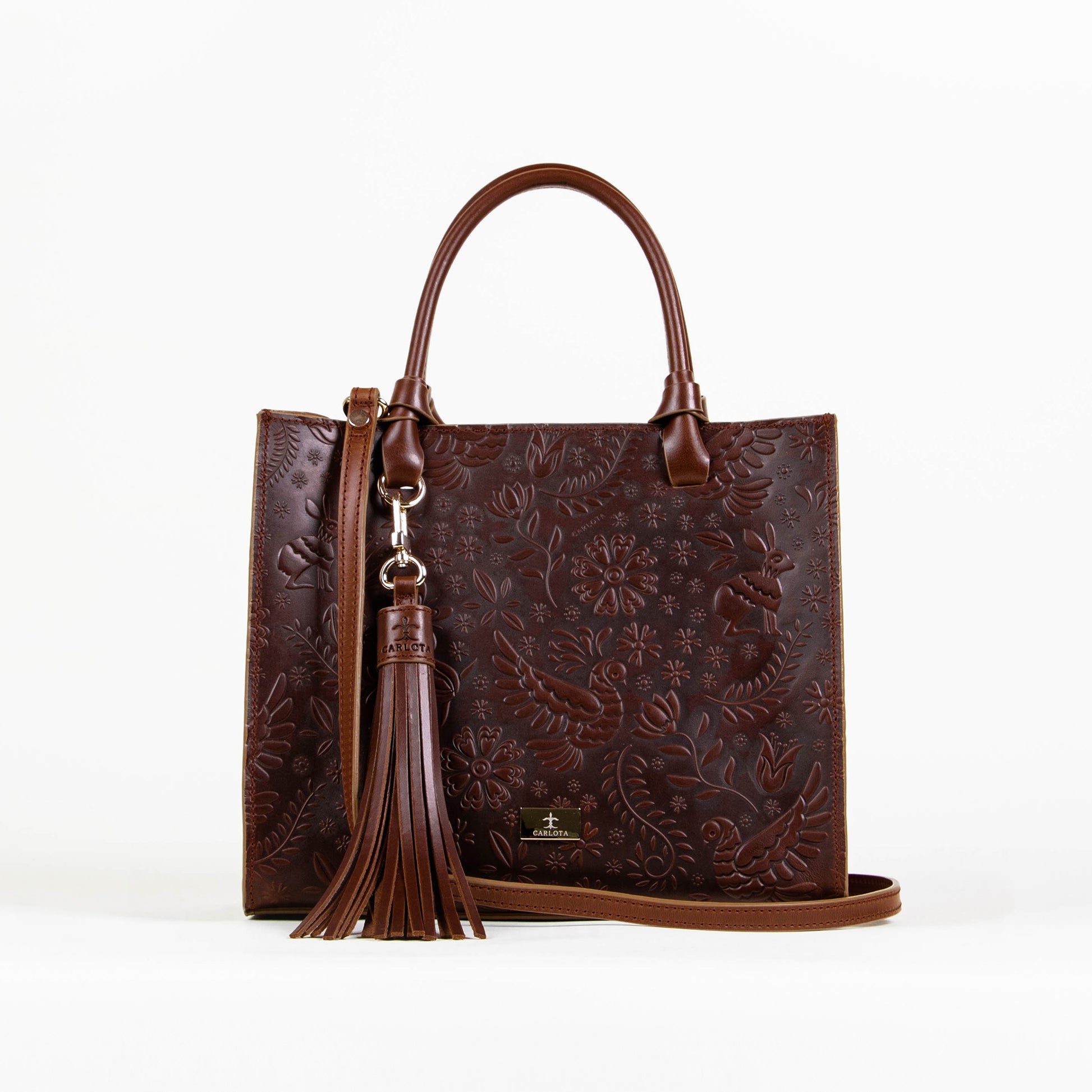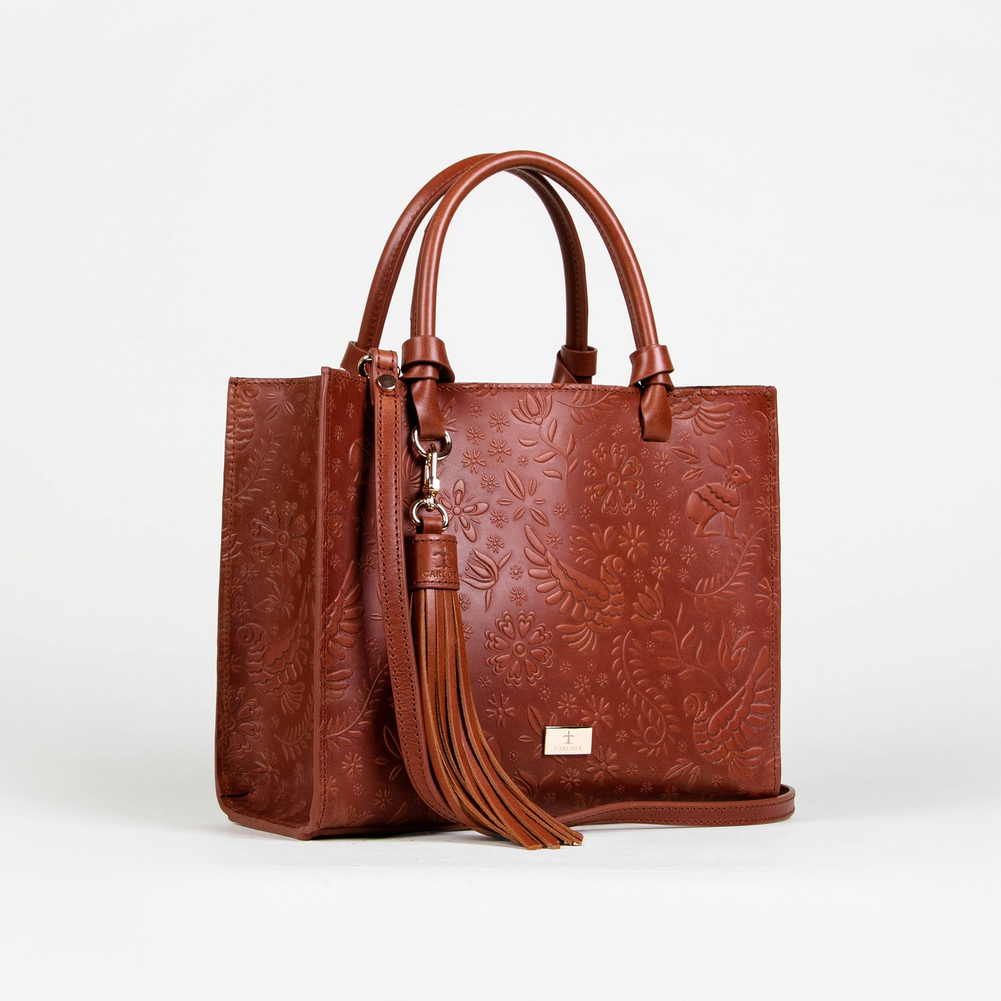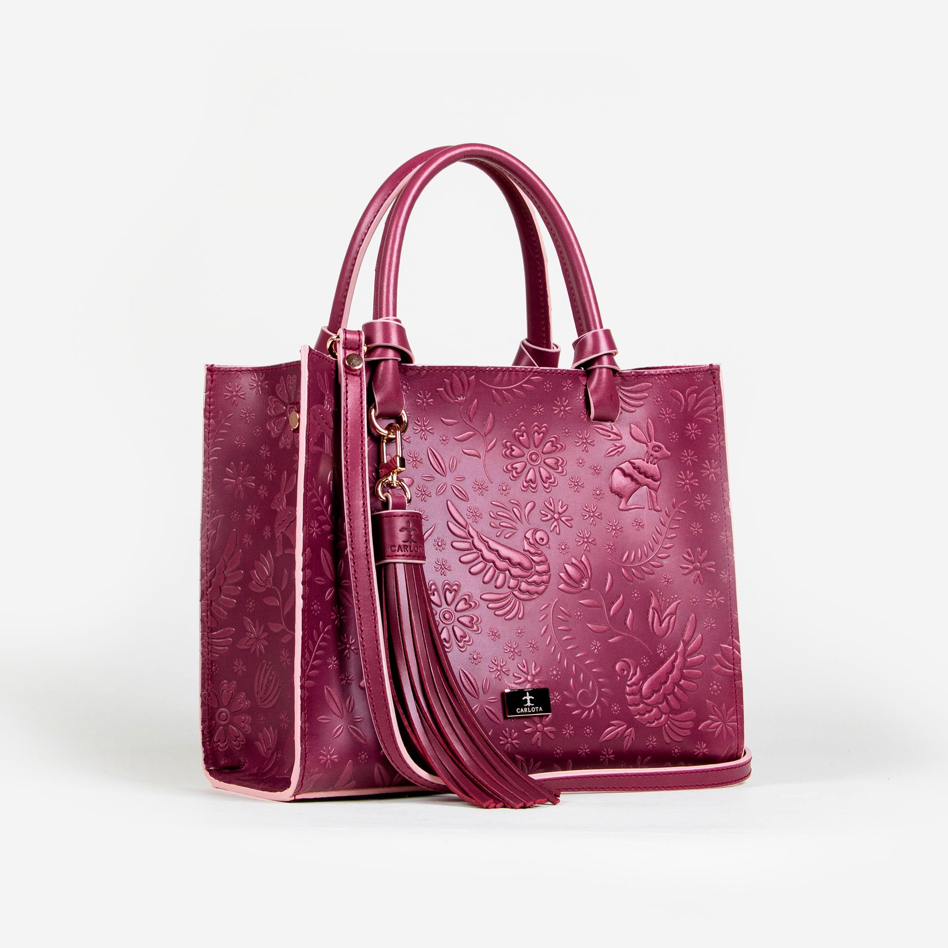 Te presentamos nuestra bolsa Mini Tote, un accesorio compacto pero lleno de estilo. Con un tamaño perfecto para tus complementos esenciales, esta bolsa cuenta con un bolsillo interno que asegura su organización y facilidad de uso. Su asa al hombro permite ser llevada a cualquier lugar y su asa removible te ofrece comodidad. Cuenta con un charm decorativo que brinda un toque único y especial, mientras sus elegantes herrajes dorados y textura de relieve enriquecen su diseño. Inspirado en la leyenda de la liebre, esta bolsa simboliza agilidad y elegancia en cada detalle.