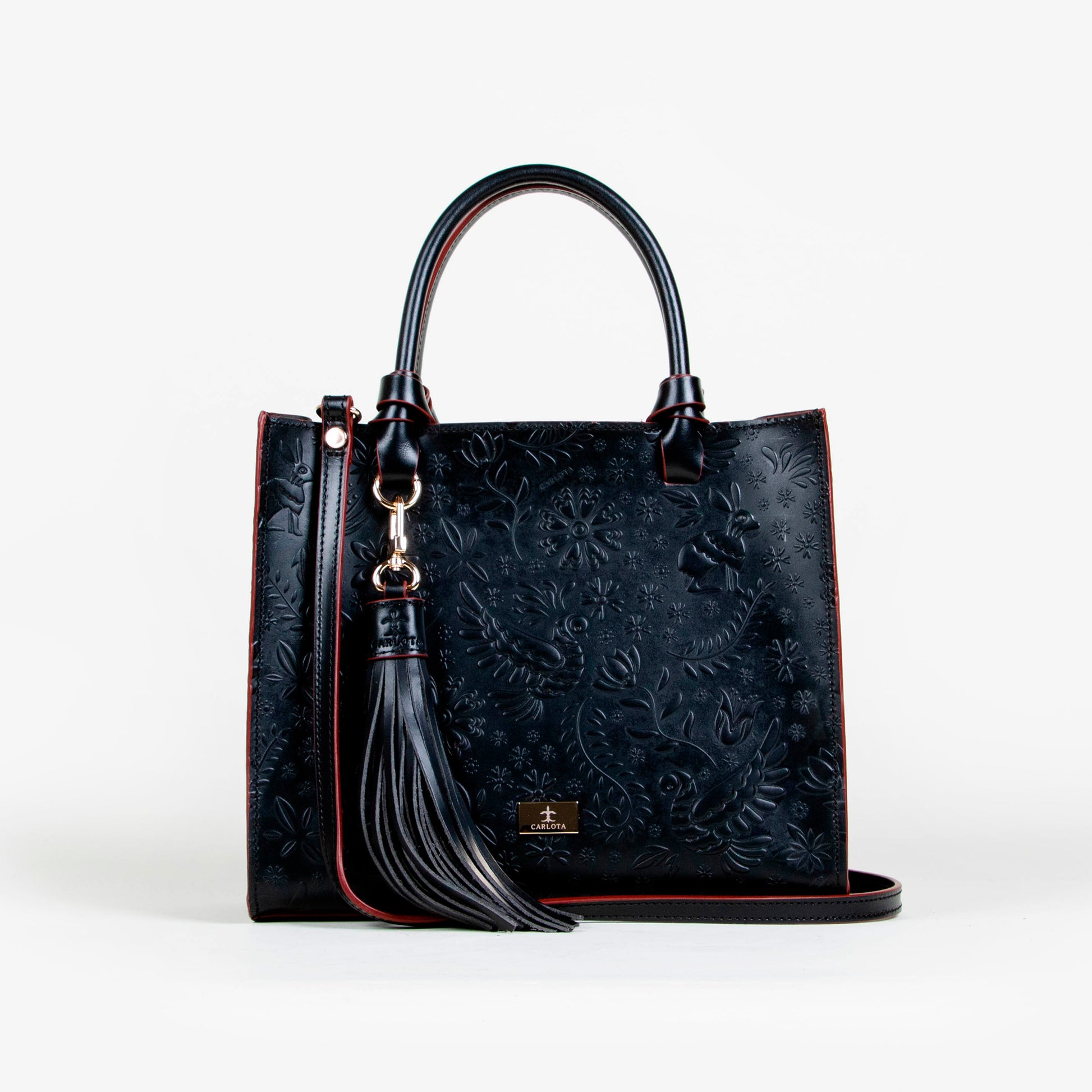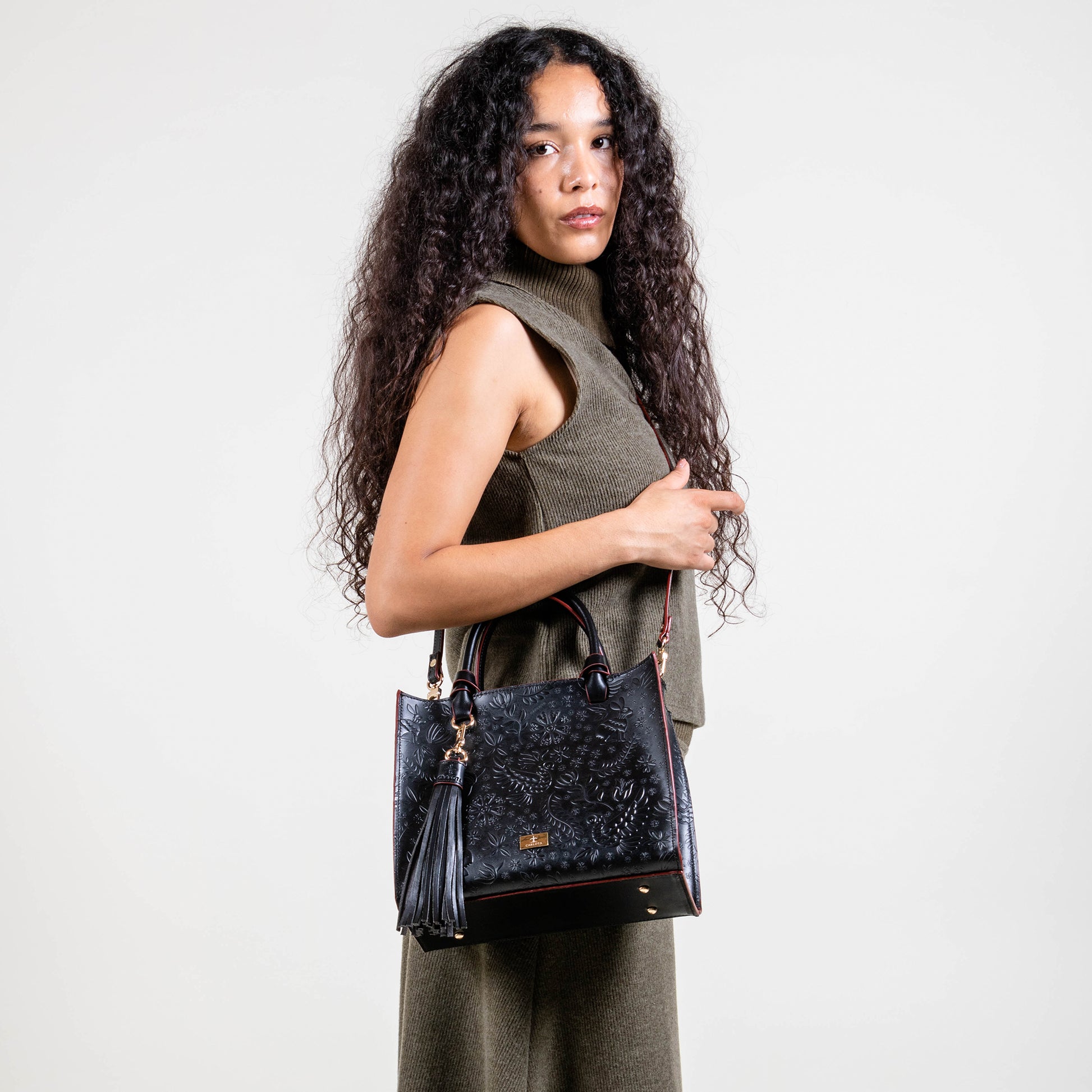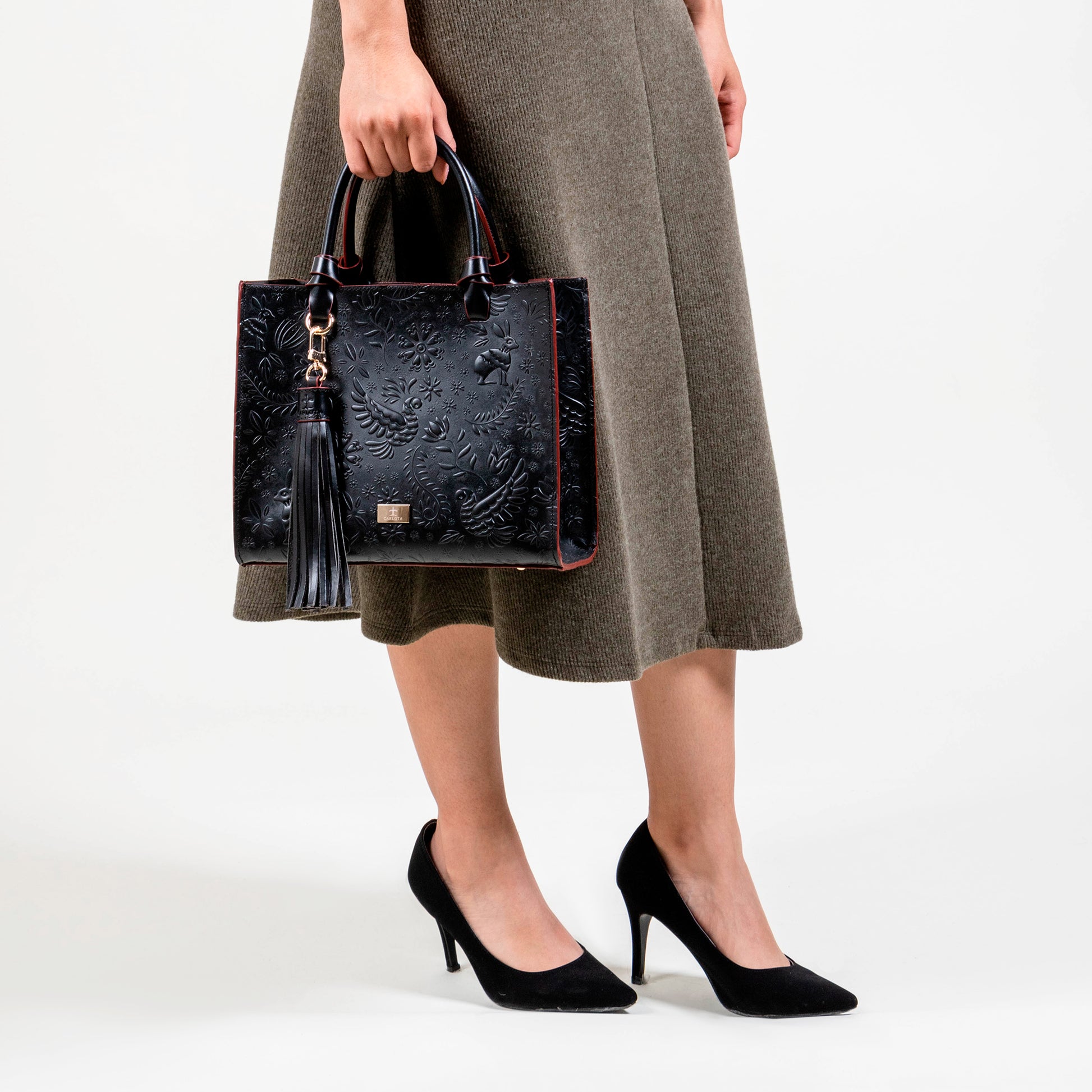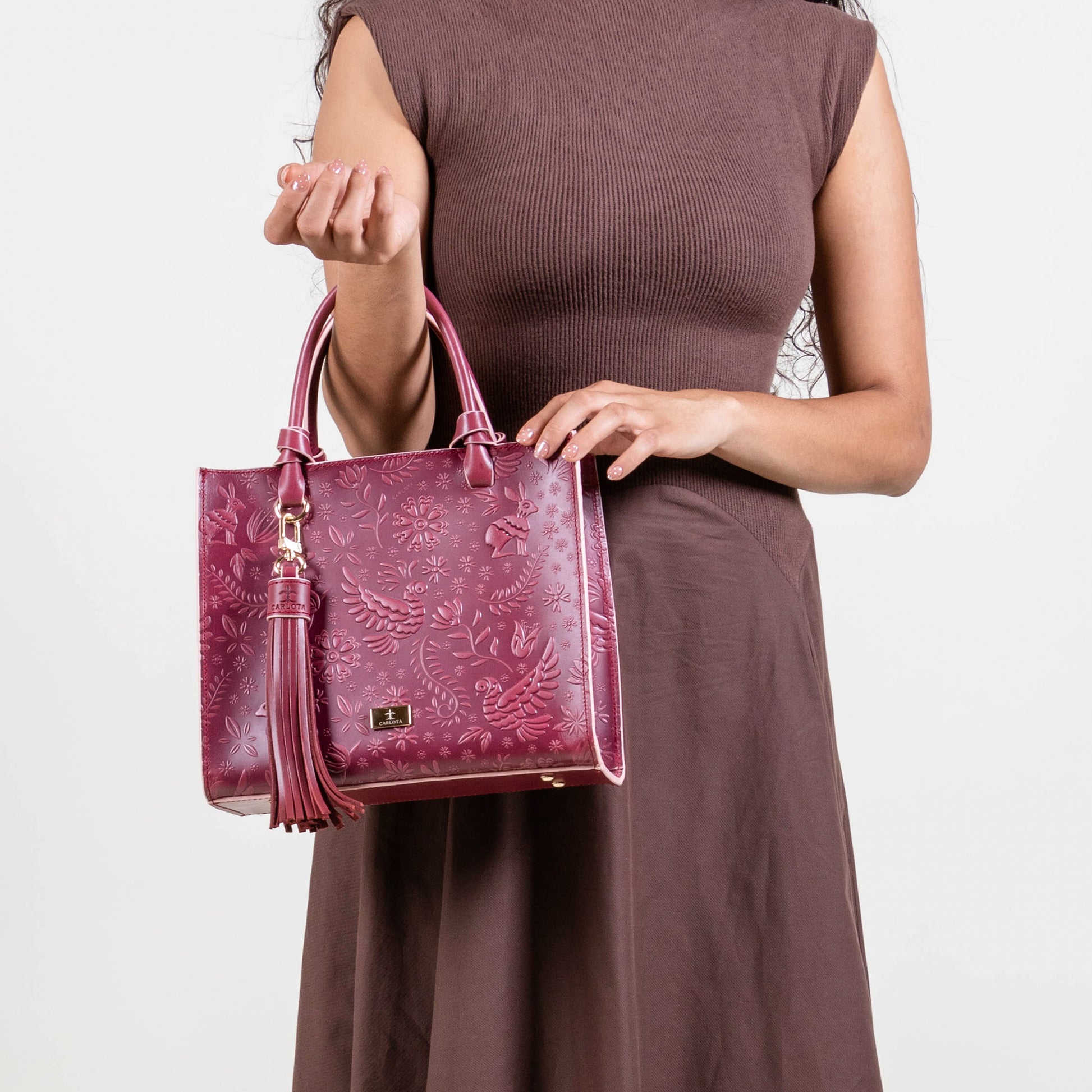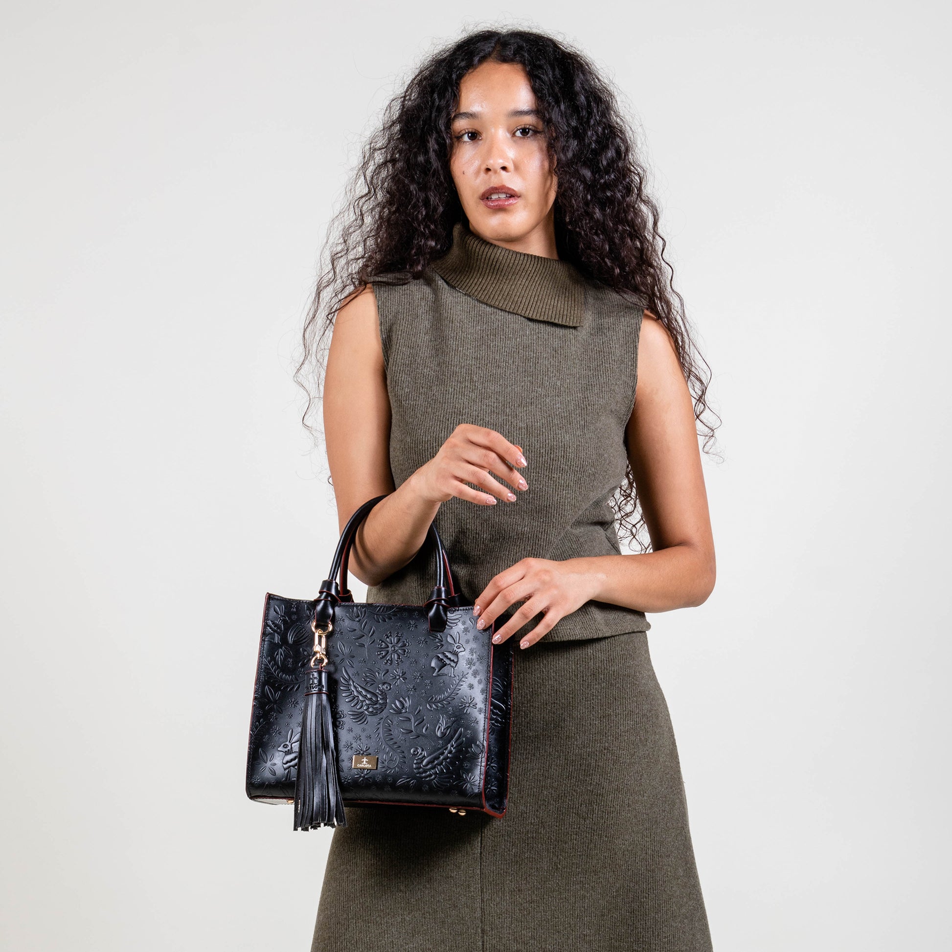 Te presentamos nuestra bolsa Mini Tote, un accesorio compacto pero lleno de estilo. Con un tamaño perfecto para tus complementos esenciales, esta bolsa cuenta con un bolsillo interno que asegura su organización y facilidad de uso. Su asa al hombro permite ser llevada a cualquier lugar y su asa removible te ofrece comodidad. Cuenta con un charm decorativo que brinda un toque único y especial, mientras sus elegantes herrajes dorados y textura de relieve enriquecen su diseño. Inspirado en la leyenda de la liebre, esta bolsa simboliza agilidad y elegancia en cada detalle.