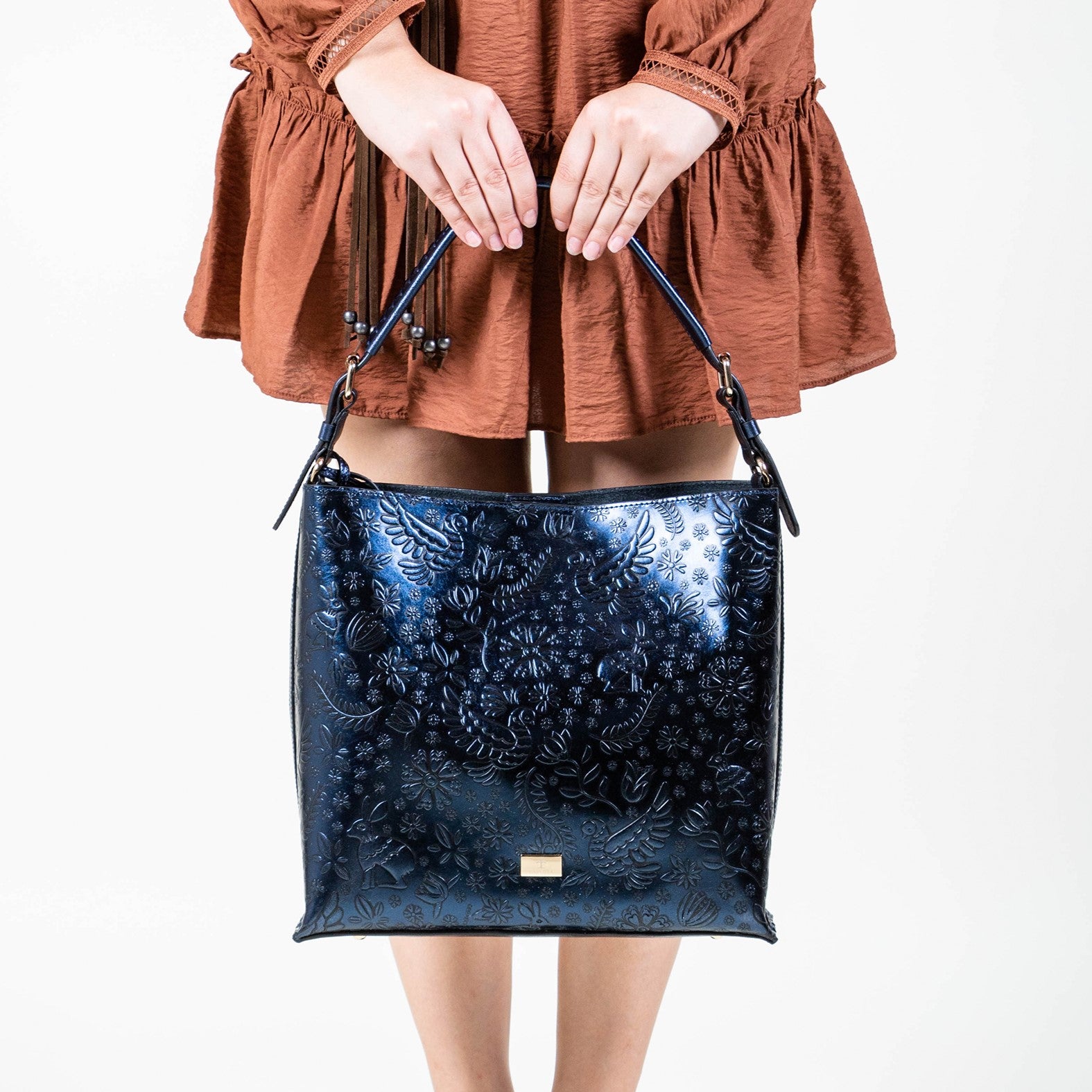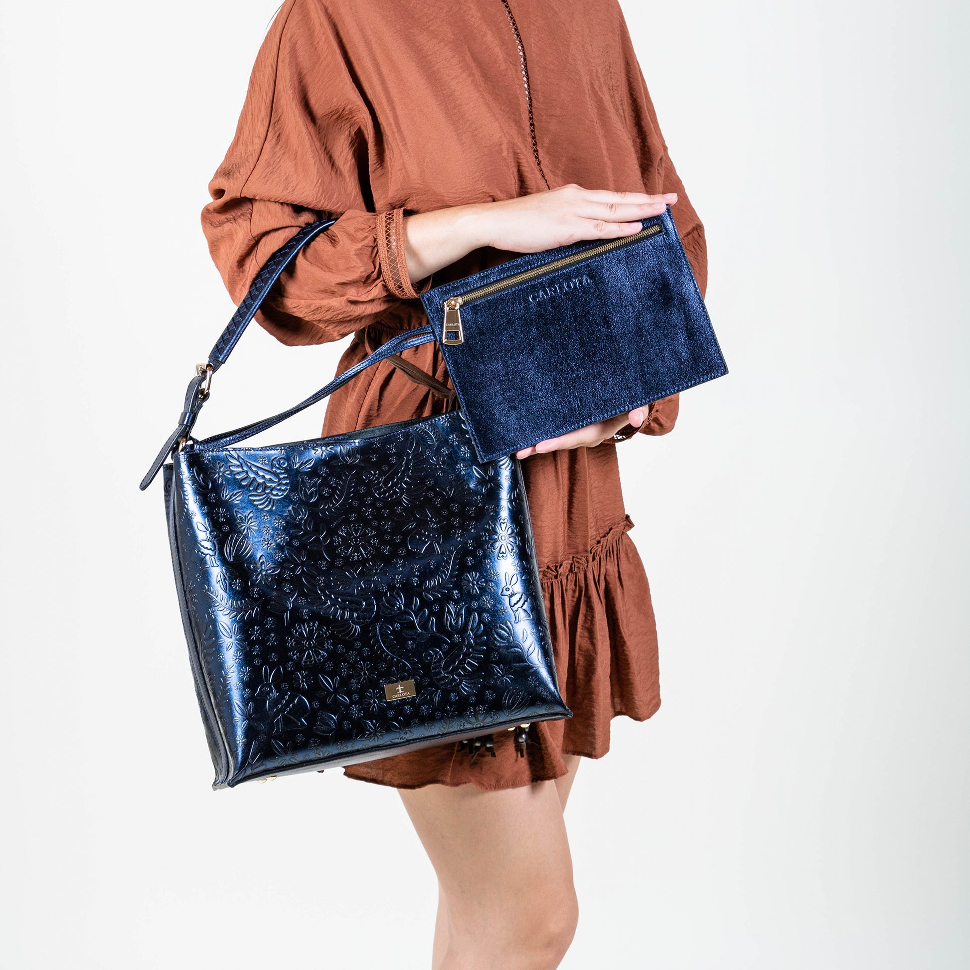 Elegancia, versatilidad y un toque de historia se combinan en nuestra bolsa Hobo. Un accesorio diseñado para quienes buscan sofisticación y comodidad. Inspirada en la legendaria leyenda de la liebre de la luna, su textura en relieve evoca magia y elegancia. Su diseño ergonómico cuenta con una correa ajustable en ambos extremos permitiéndote adaptarla a tu estilo y comodidad. En su interior un práctico bolso organizador para tener tus objetos esenciales siempre a la mano, mientras sus hermosos herrajes dorados añaden un brillo sutil y refinado. Descubre el equilibrio perfecto entre historia y funcionalidad.