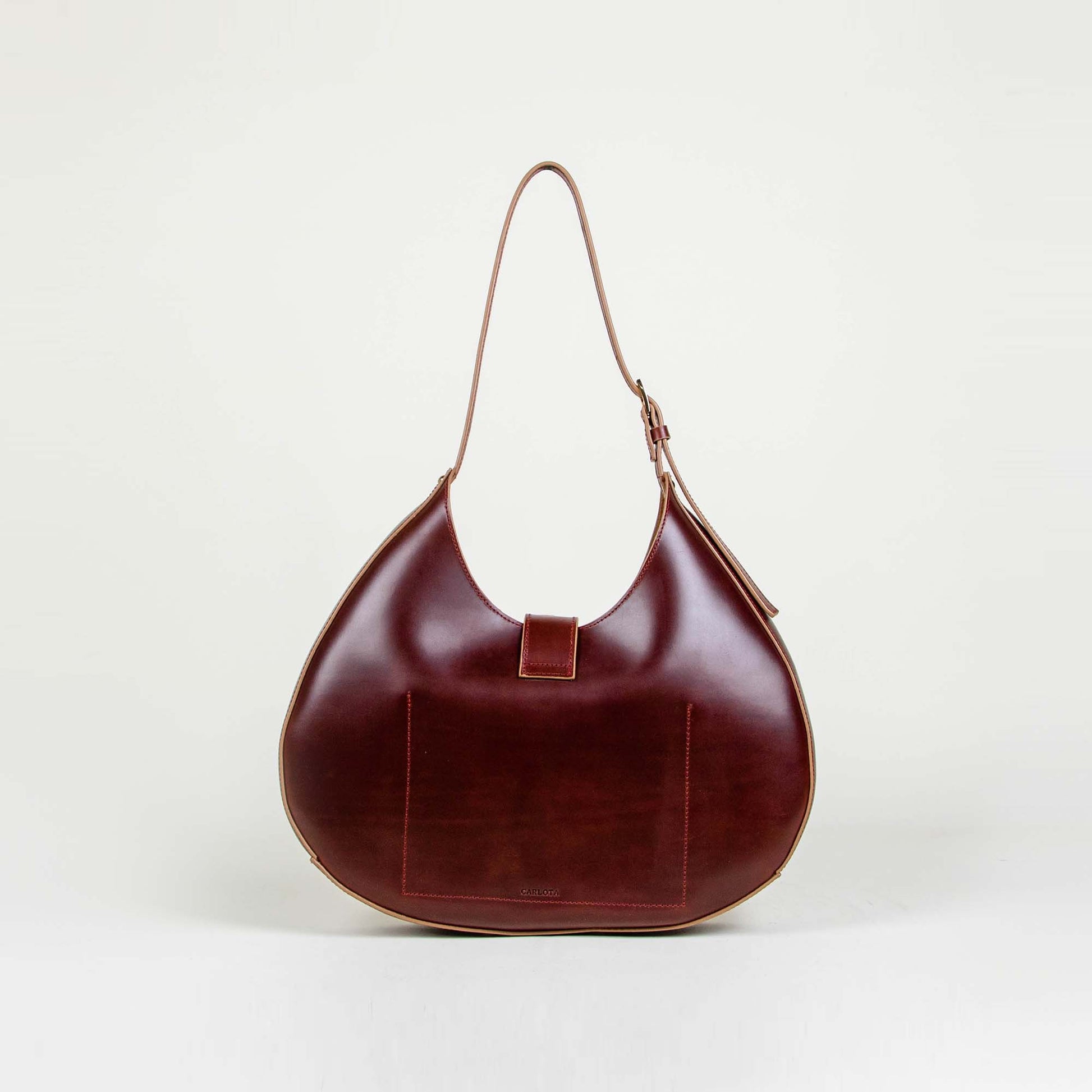 Bolso Hobo con un asa ajustable, charm de pajarito en metálico y una lengüeta con broche de imán en en centro.