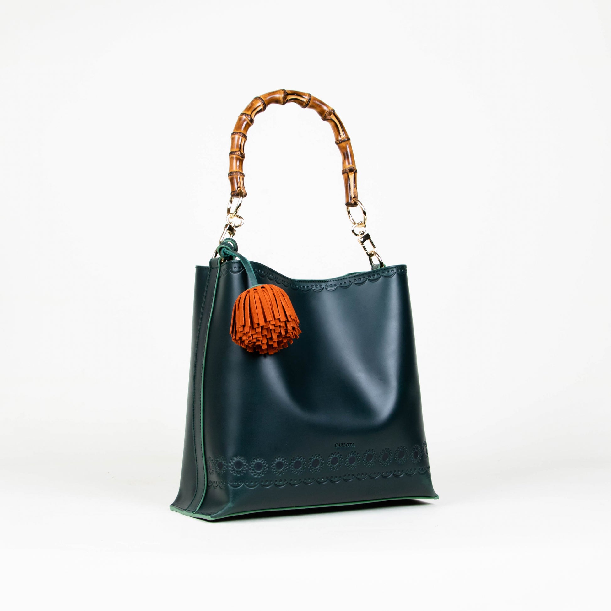 Con un asa resistente para usarse como Shoulder Bag y un asa de bambú que permite usarse como Hand Bag y da un estilo diferente.
