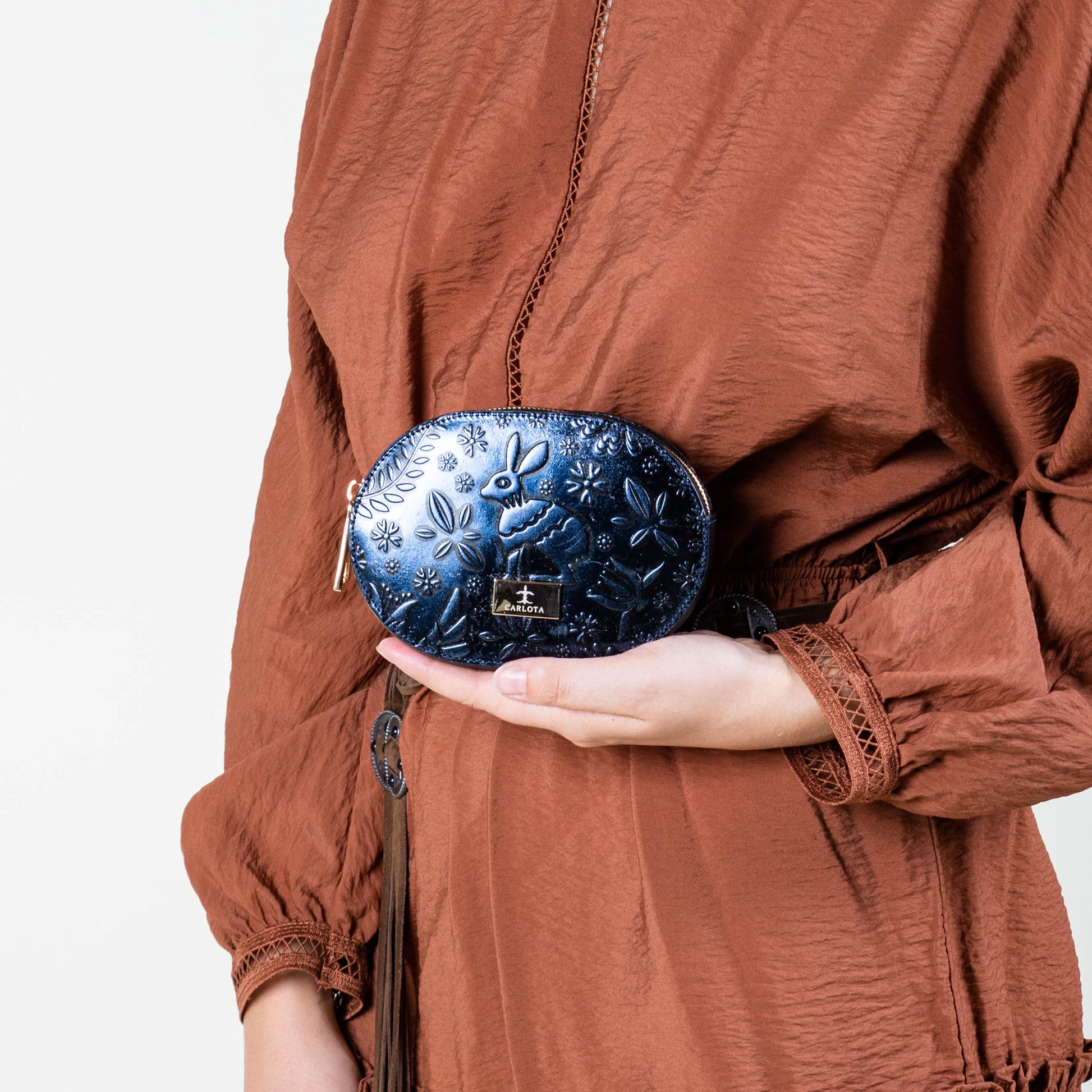 El monedero de la colección Liebre es una pieza que rinde homenaje a la fascinante leyenda de la liebre en la luna. Su diseño destaca por un impresionante detalle en relieve grabado que captura la esencia del paisaje lunar, convirtiendo cada vistazo en una experiencia visual única. Los cierres dorados, sutilmente brillantes, añaden un toque de lujo y refinamiento, haciendo que cada apertura sea un pequeño acto de elegancia. Este monedero no solo es funcional, sino también un auténtico accesorio de estilo que evoca magia y sofisticación.